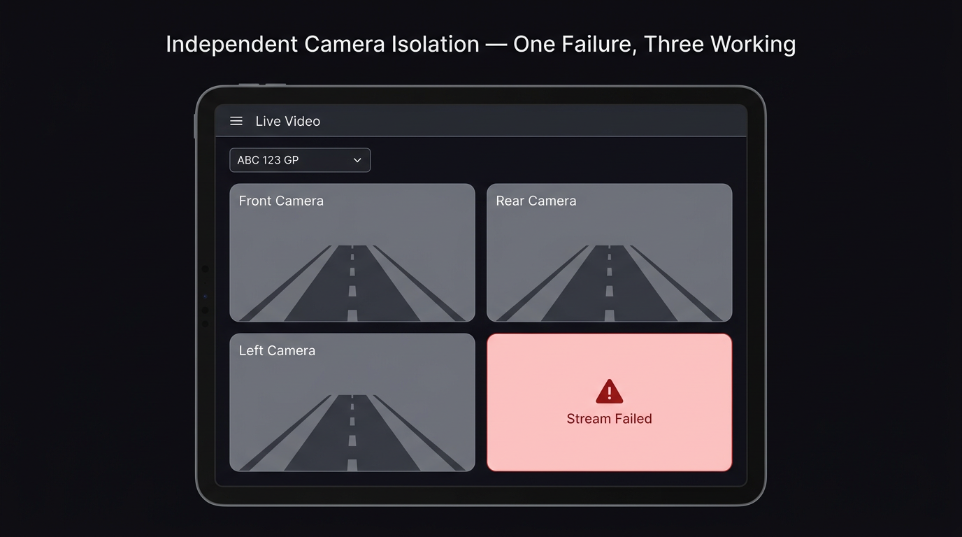 The operator doesn't care about any of this. They tap a vehicle and expect video. So I had to build a single view that figures out what the camera is offering and activates the right player automatically - without the user ever knowing there was a decision being made.